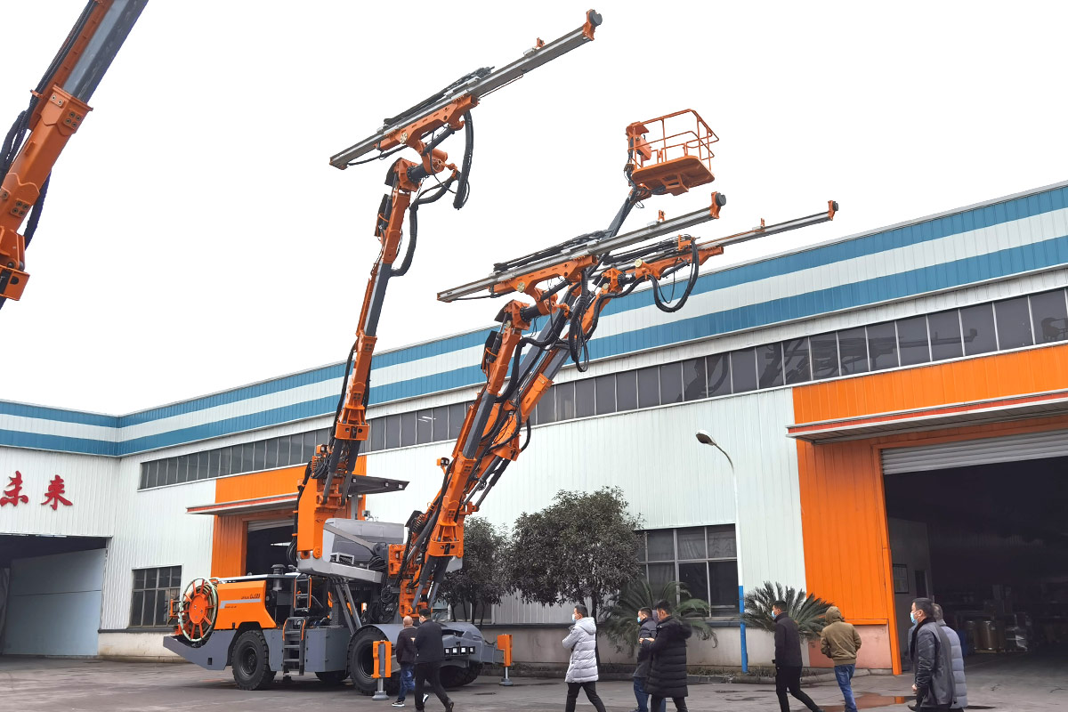 HW-UJ33 underground drilling jumbo used for highway, railway, hydropower and other medium-sized tunnel excavation, anchor construction, and equipped with heavy drilling booms and a service platform, all-round high standard configuration to meet the different needs of customers.