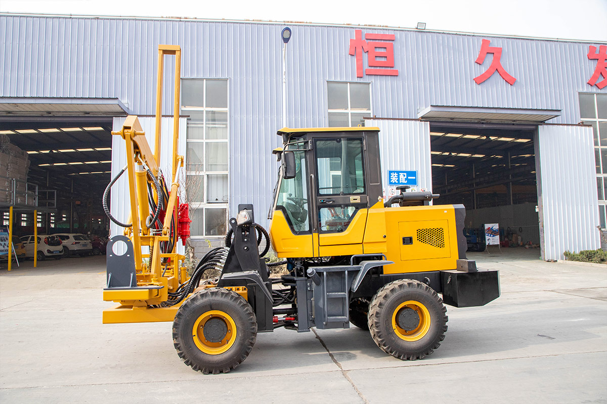 The loading guardrail pile driver integrates driving, pulling and drilling, and is mainly used for highway guardrail piles, photovoltaic panel installation, etc.