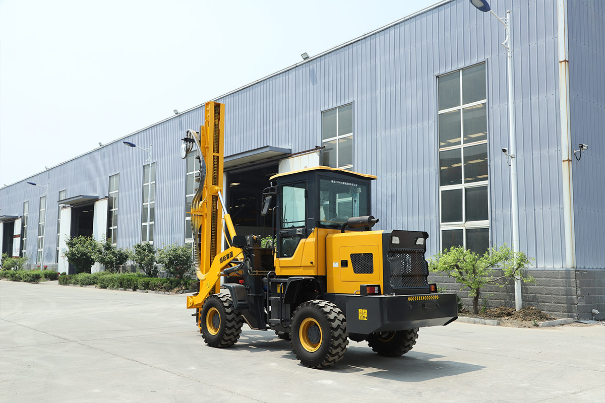 2. This hydraulic drilling rig integrates a drilling rig and a loader, one machine for two purposes, large torque, four-wheel drive design, and is suitable for various complex terrains.