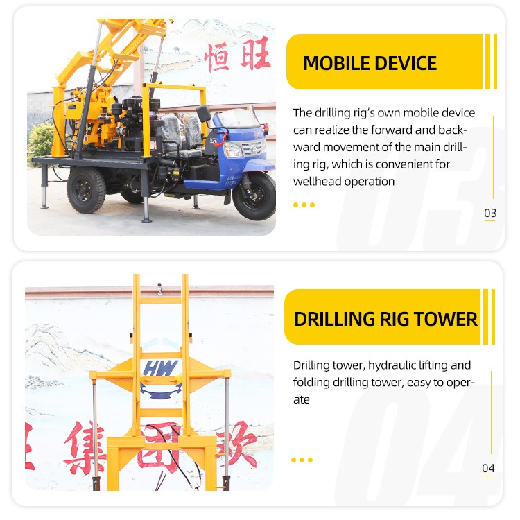 Hengwang Group hydraulic drilling rig is a professional water well drilling equipment, mainly used for industrial drilling, low temperature drilling and agricultural drilling. Wireline coring rigs can be used for geological exploration as well as SPT soil testing.