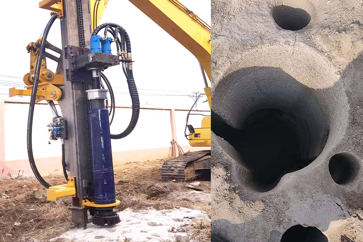 2. 360 degree free stretch,the excavator can adjust the angle of the drill pipe according to the different positions to keep the 90° vertical drilling in uneven company situations;