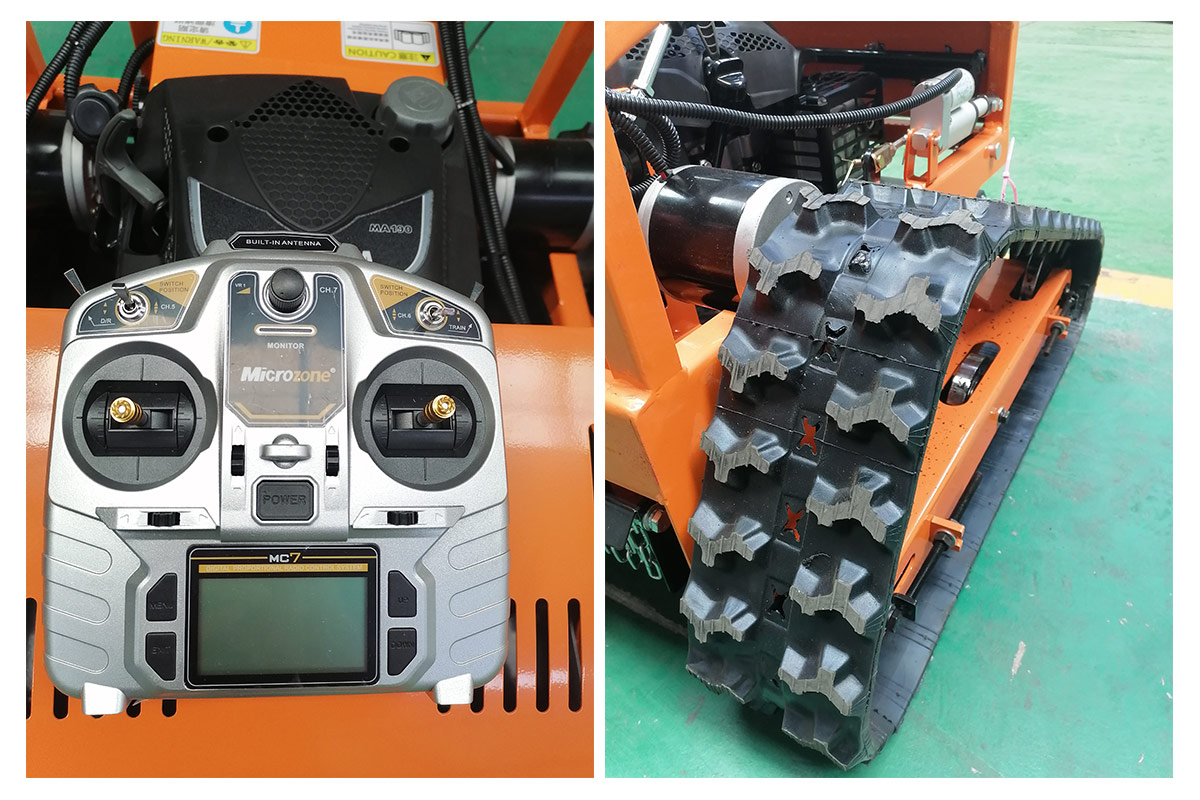 • The remote control lawn mower is a remote control intelligent agricultural and forestry equipment, with low energy consumption and free walking on the hillside. Suitable for forestry, grassland, roads, dams, agriculture, forestry, orchards, vegetables, greenhouses, farms, ecological gardens, etc.